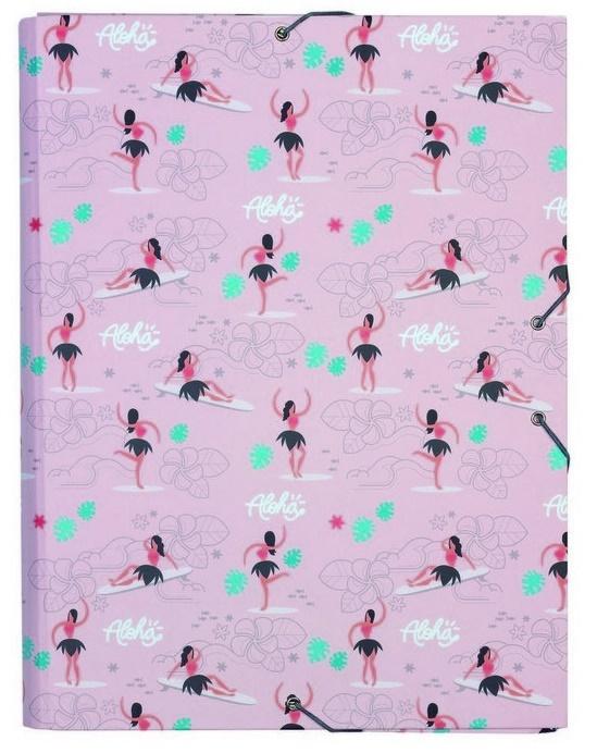 Folder w twardej oprawie zapinany na gumkę. Może pomieścić format A4 (33,5 x 26 cm) o grubości 3 cm, co odpowiada około 200 arkuszom. Matowe wykończenie z nadrukiem HULA pasującym do kolekcji. Kolor wnętrza pasuje do koloru gumki. Wymiary: 33,5 x 26 x 2,5 cm