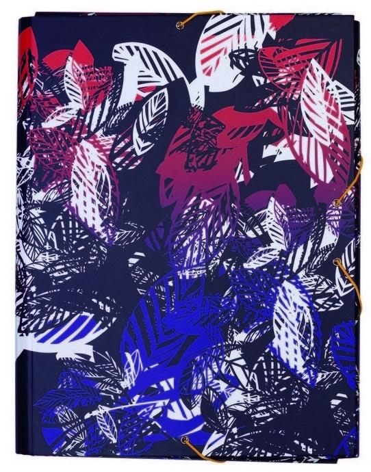 Folder w twardej oprawie zapinany na gumkę. Może pomieścić format A4 (33,5 x 26 cm) o grubości 3 cm, co odpowiada około 200 arkuszom. Matowe wykończenie z nadrukiem JUNGLE pasującym do kolekcji. Kolor wnętrza pasuje do koloru gumki. Wymiary: 33,5 x 26 x 2,5 cm.