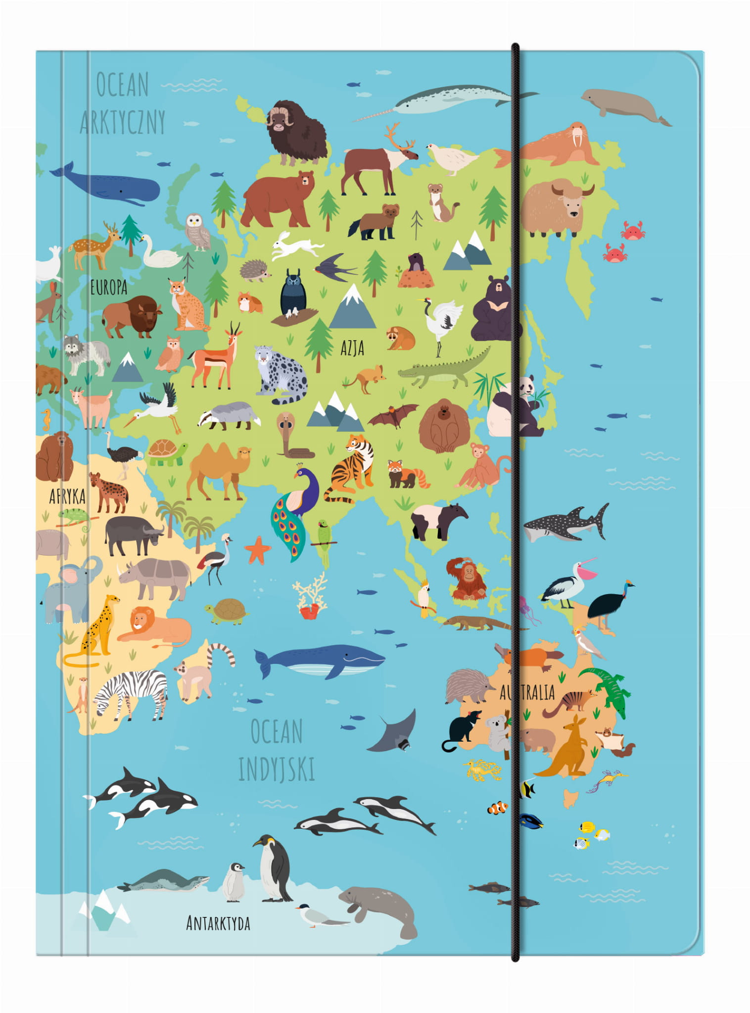 Opakowanie Teczka A4 z gumką Mapa Świata zwierzęta