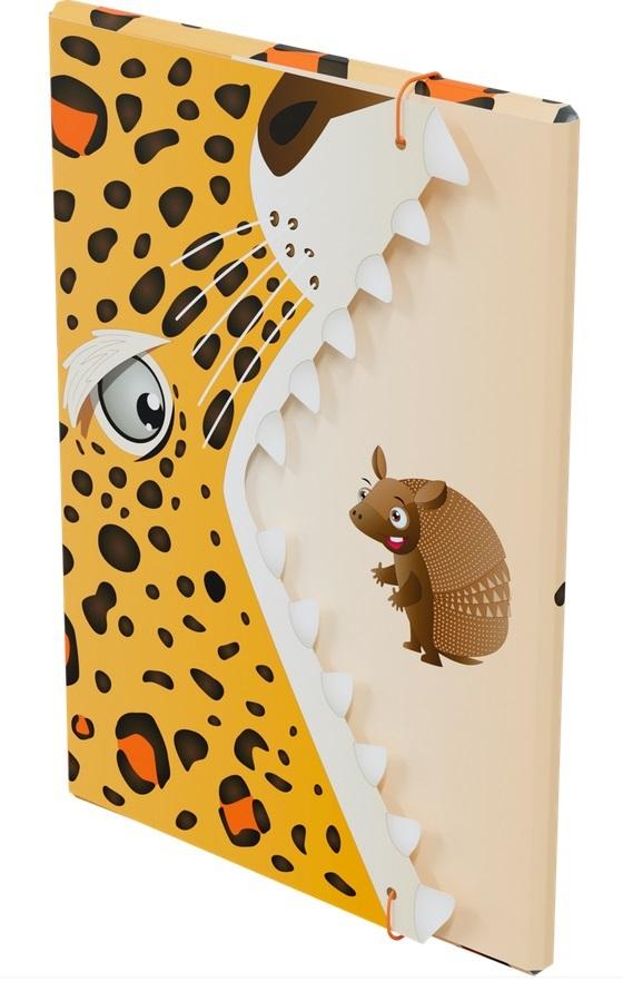 Lampart jest bardzo silnym zwierzęciem, jest drapieżnikiem. Mogłoby się wydawać, że ten malutki pancernik wcale nie ma z nim szans. Ale czy na pewno? To, że ktoś jest wielki nie oznacza, że wszystko może, że niczego się nie boi, że sprosta każdemu zadaniu. A gdyby tak spojrzeć trochę bardziej metaforycznie na teczkę. Ja to ten mały pancernik, lampart to wyzwanie, czyli coś co muszę zrobić, ale strasznie mnie to przeraża. Zupełnie nie wiem jak mam się zabrać do tego tematu. Bo co ja mogę? Jestem tylko małym, nic nie potrafiącym pancernikiem! A teraz spójrzmy na to inaczej. Lampart, ten wielki zły zwierzak ma szeroko otwarta paszczę z tymi ogromnymi wielkimi zębami, a pancernik jest taki uśmiechnięty jakby właśnie wygrał na loterii! Czysta abstrakcja? A może jednak coś w tym jest? Są takie chwile w życiu, gdy myślimy że już nie damy rady, że nie możemy niczego osiągnąć, że do niczego się nie nadajemy. Każdy może mieć chwilę słabości. To zupełnie naturalne. Ale życie to nie bajka, to ciągłe wyzwania. To jak je przeżyjemy zależy od nas, od naszego nastawienia. Może zamiast mówić: to się nie uda, lepiej pomyśleć: dam radę, a przynajmniej spróbuję!. Oczywiście nie jest to łatwe zadanie, ale jeżeli coś jest trudne do osiągnięcia, to później kiedy się już z tym uporamy, nasza satysfakcja jest o wiele większa! Zamiast od razu dawać za wygraną, warto jest przynajmniej spróbować uporać się z danym zadaniem czy problemem. Niech ten uśmiechnięty pancernik będzie motywacją do działania! Niech ta teczka pomoże uporządkować ważne dokumenty. Niech ten lampart ucieka w siną dal i zabierze ze sobą zmartwienia. Jedna teczka, niby tylko teczka, a jednak tak bardzo może dać do myślenia i być może zachęcić do działania! Powodzenia!