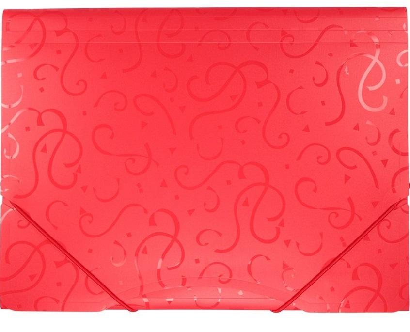 Regulowana grubość grzbietu, wykonana z twardego, kolorowego polipropylenu w tłoczone atrakcyjne wzory. Posiadają 3 zakładki zabezpieczające, zamykana za pomocą narożnych gumek w kolorze teczki. Pakowane po 1 sztuce w woreczek foliowy. Kolor: czerwona.