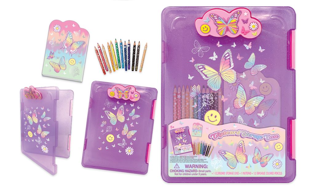 Teczka A4 z klipsem + kredki Motylki