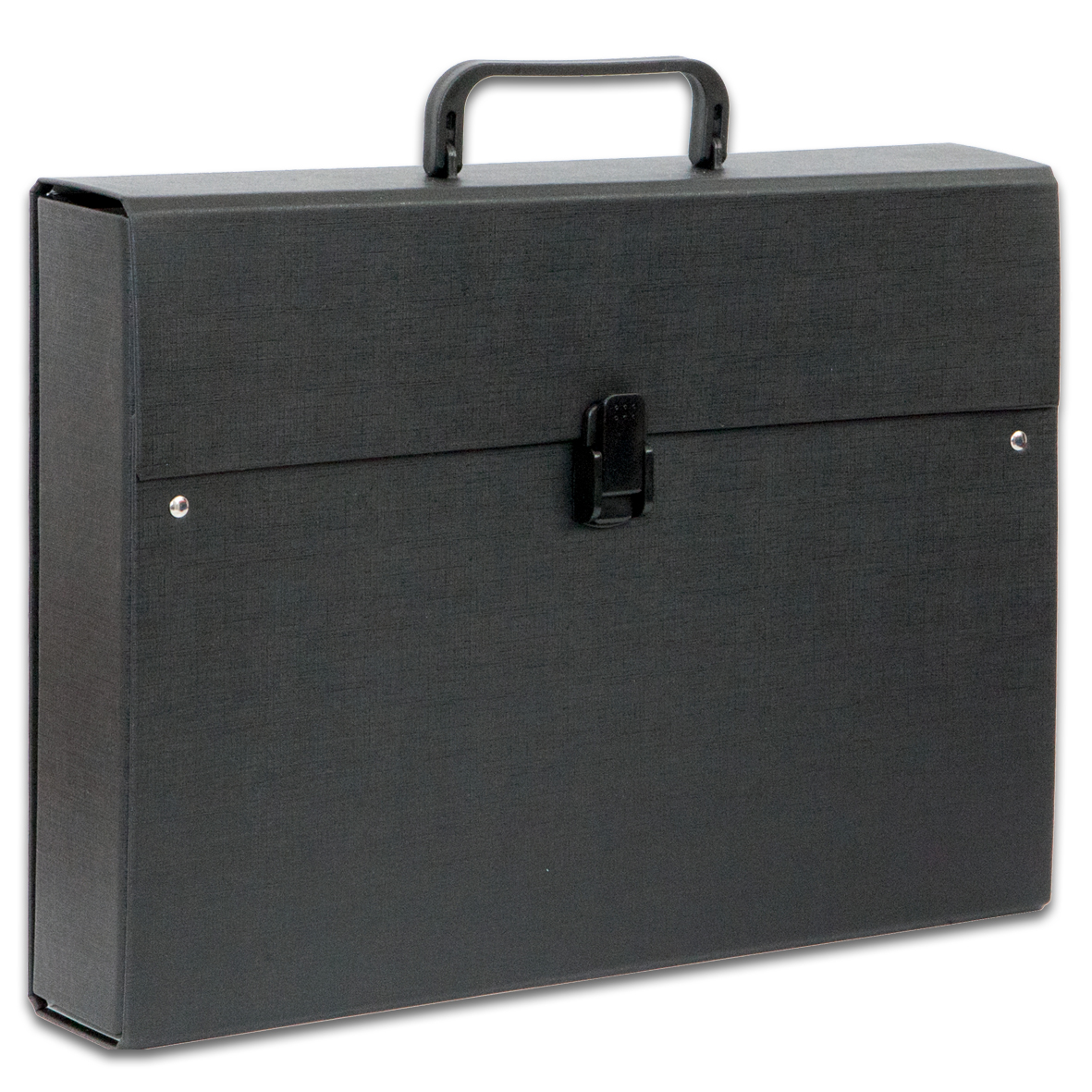 Wykonana z tektury 1,7mm, nitowane boki z okleinowanymi krawędziami. Okleina Lux PCV na papierze. Wymiary w cm: 36 x 26,5 x 6,5.