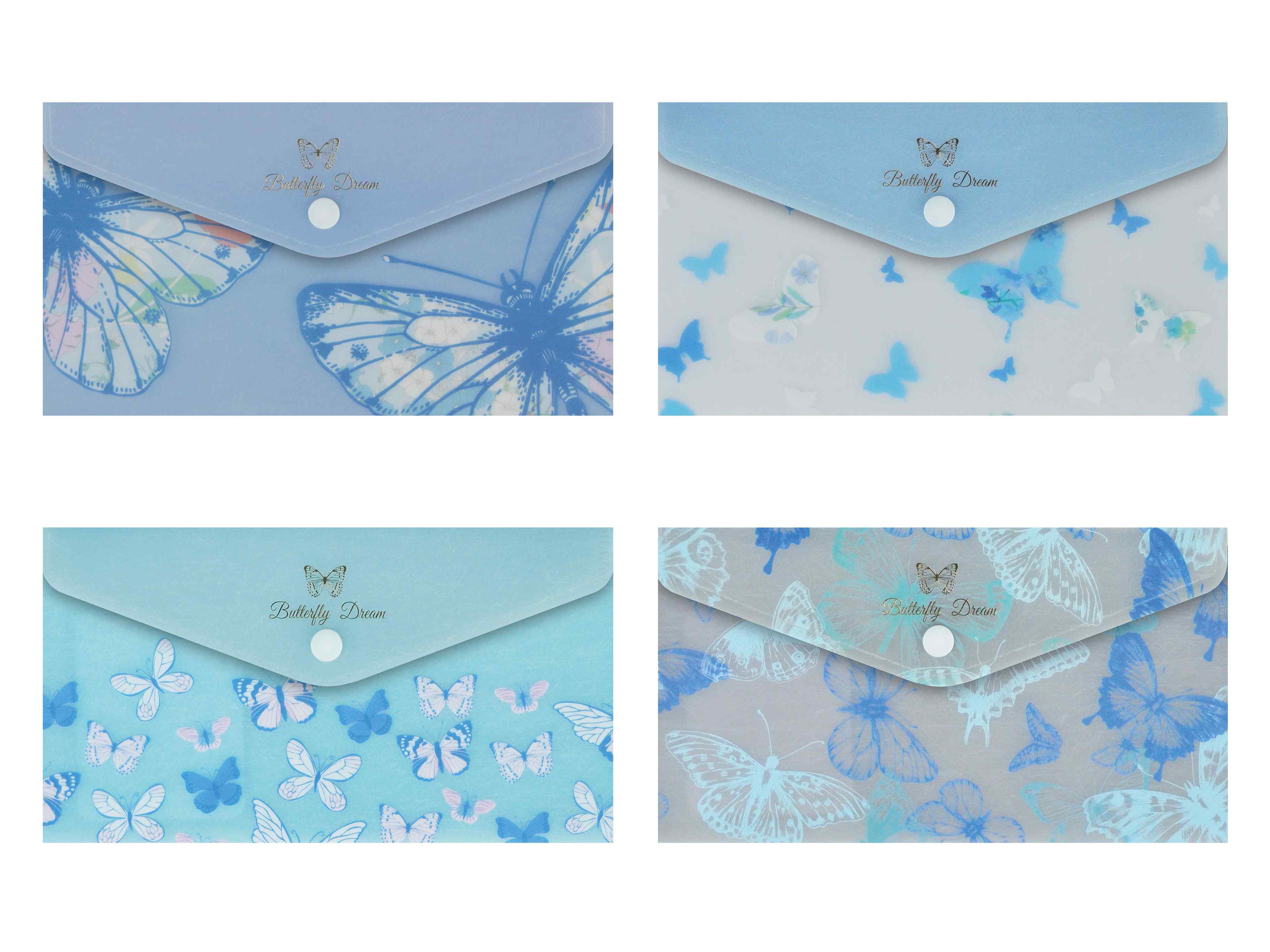 Opakowanie Teczka DL kopertowa na zatrzask nadruk Motyle niebieska 1szt.mix