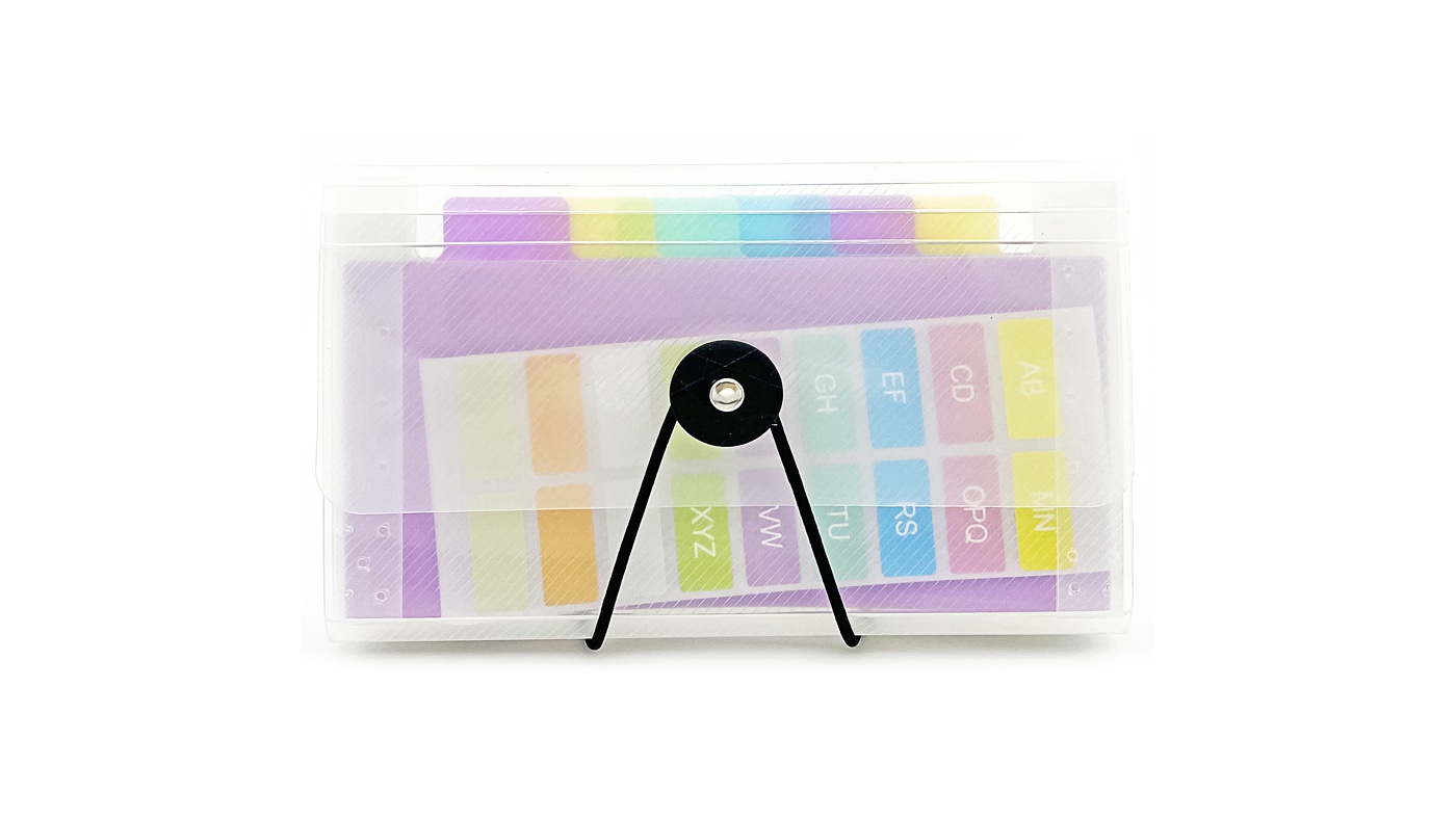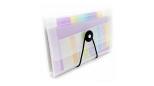 Teczka harmonijkowa wykonana z bezbarwnego, sztywnego tworzywa PP.