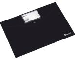 Teczka z kolorowego, lekko matowego polipropylenu o prążkowanej fakturze, pozioma, format A4, kieszeń na opis lub na wizytówkę, zamykana na zatrzask.