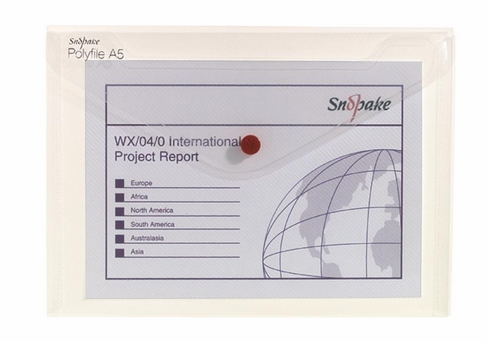 Przeźroczysta teczka kopertowa A5. Bardzo starannie wykonana z polipropylenu. Zamykana na zatrzask.