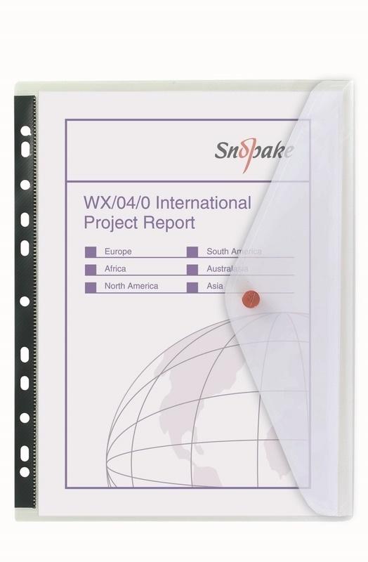 Teczka kopertowa marki Snopake, z możliwością wpięcia do segregatora. Teczka została wykonana z przezroczystego polipropylenu. Pojemność 100 arkuszy papieru o gramaturze 80. Zamknięcie na zatrzask. Przystosowana do wszystkich typów segregatorów.