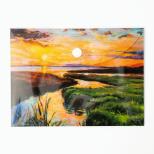 Teczka kopertowa VISTA Rzeka Narcissus, format A6 Ozdobna teczka kopertowa VISTA, wykonana z trwałego polipropylenu z nadrukiem w postaci impresjonistycznego widoku ujścia rzeki wpływającej do jeziora. Zamykana na zatrzask typu napa. Dzięki pełnemu zadrukowi, zawartość teczki pozostaje niewidoczna na zewnątrz. Idealne rozwiązanie do przechowywania dokumentów lub niewielkich płaskich przedmiotów. Specyfikacja: • format A6 (170 x 125 mm) • wykonana z polipropylenu • zamykanie na zatrzask typu napa • grubość tworzywa 28 mikronów