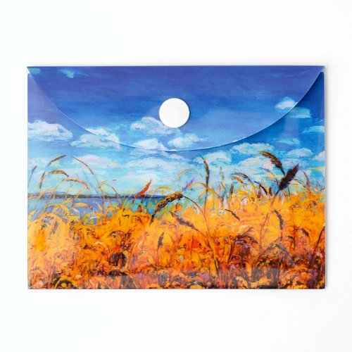 Teczka kopertowa VISTA Niebo Narcissus, format A7 Ozdobna teczka kopertowa VISTA, wykonana z trwałego polipropylenu z nadrukiem w postaci impresjonistycznego widoku kołyszących się zbóż na tle lazurowego nieba. Zamykana na zatrzask typu napa. Dzięki pełnemu zadrukowi, zawartość teczki pozostaje niewidoczna na zewnątrz. Idealne rozwiązanie do przechowywania dokumentów lub niewielkich płaskich przedmiotów. Specyfikacja: • format A6 (120 x 90 mm) • wykonana z polipropylenu • zamykanie na zatrzask typu napa • grubość tworzywa 28 mikronów