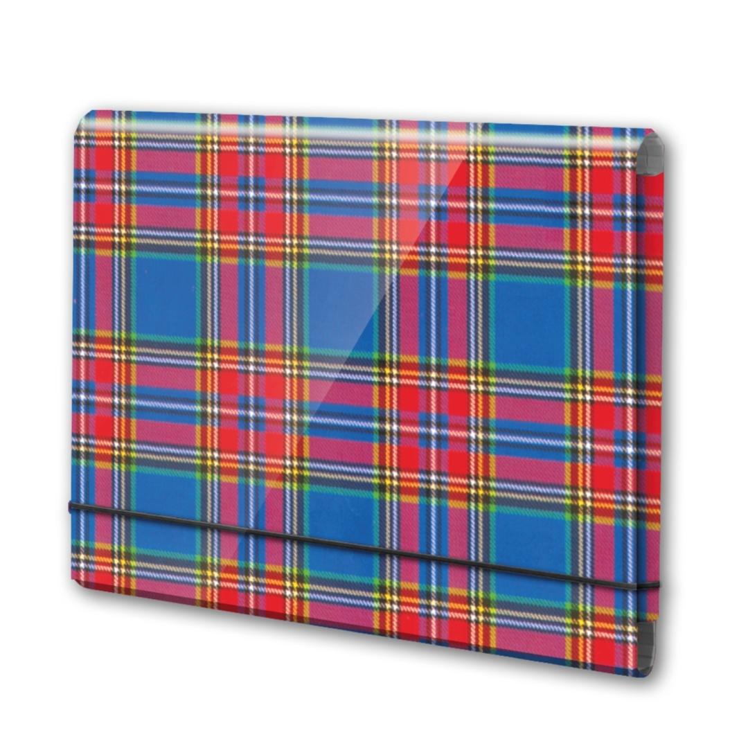 Wykonana z tektury 1,7mm, nitowane boki z okleinowanymi krawędziami. Okleina kratka uszlachetniona błyszczącą folią polipropylenową.Regulowana grubość grzbietu do 4 cm. Wymiary w cm:32x24,5