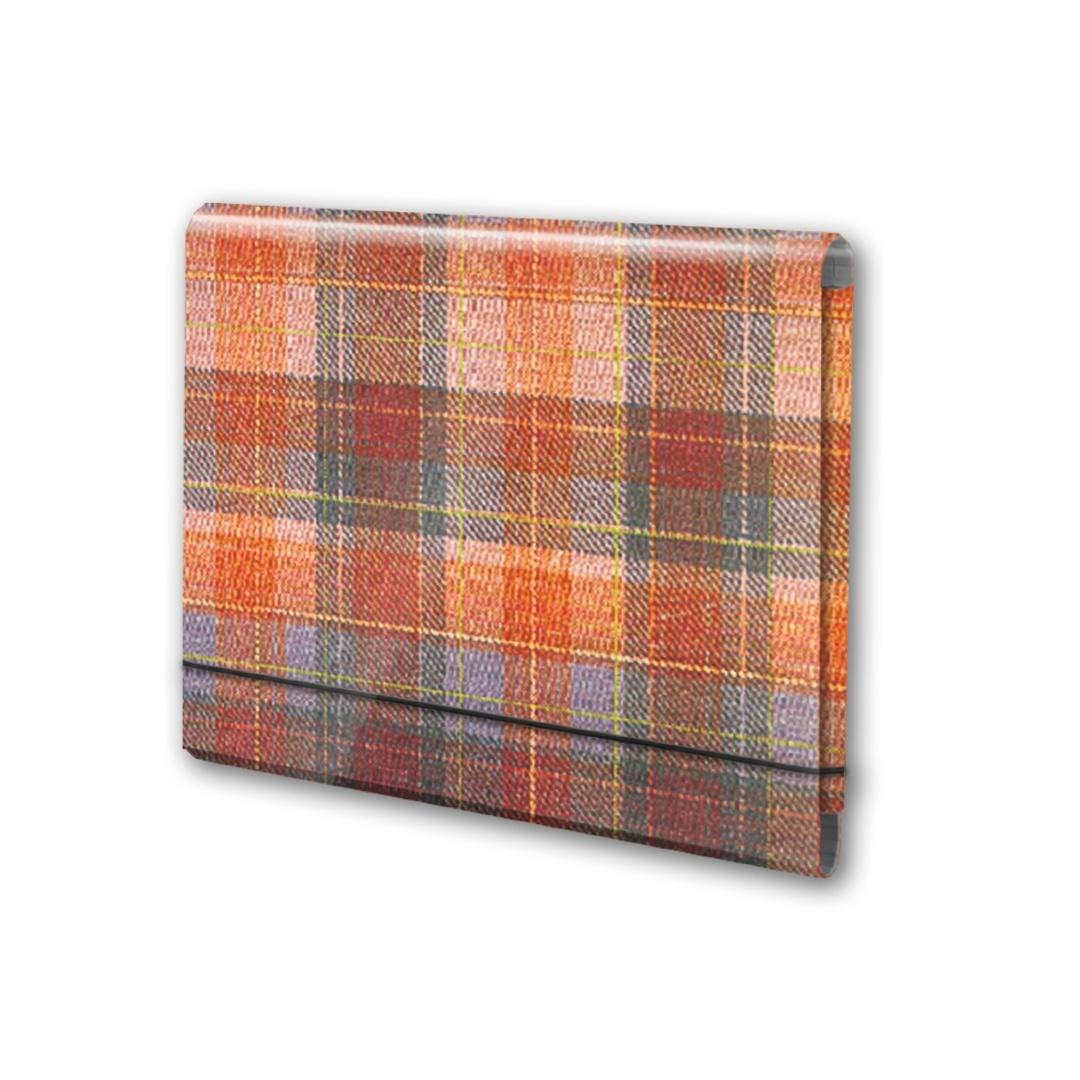 Wykonana z tektury 1,7mm, nitowane boki z okleinowanymi krawędziami. Okleina kratka uszlachetniona błyszczącą folią polipropylenową.Regulowana grubość grzbietu do 4 cm. Wymiary w cm:26x21