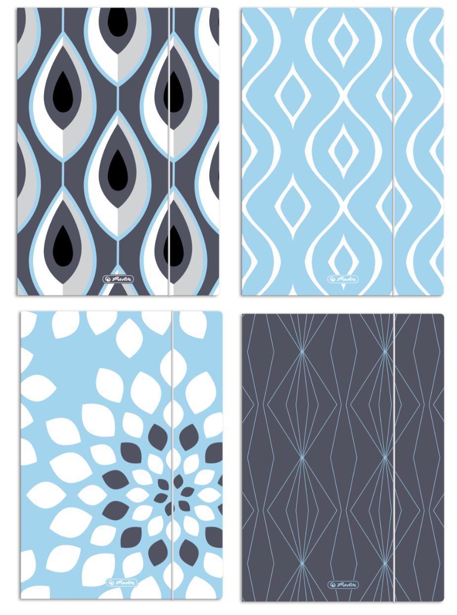 Lakierowana okładka 350g, trzy wewnętrzne zakładki zabezpieczajace dokumenty przed wypadaniem, elastyczna gumka zapewniająca pewne zamknięcie teczki, grafika spójna z zeszytami Herlitz tej samej serii.