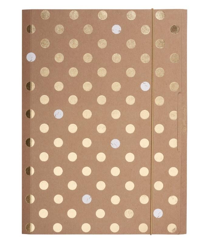 Teczka A4 wewnętrzne zakładki oraz wytłoczenia do regulacji objętości, pionowa gumka zamykająca.
