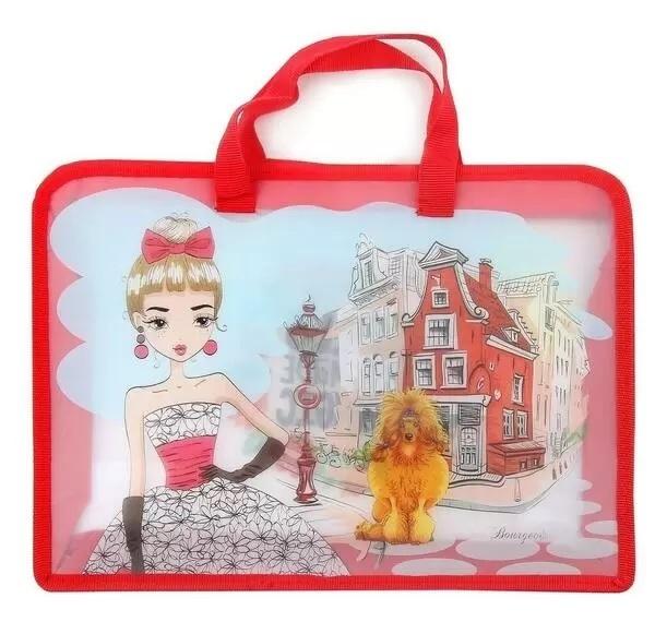 Teczka-torba A4+ zapinana na zamek z rączką Dziewczyna P0043, grubość 600 mikronów.