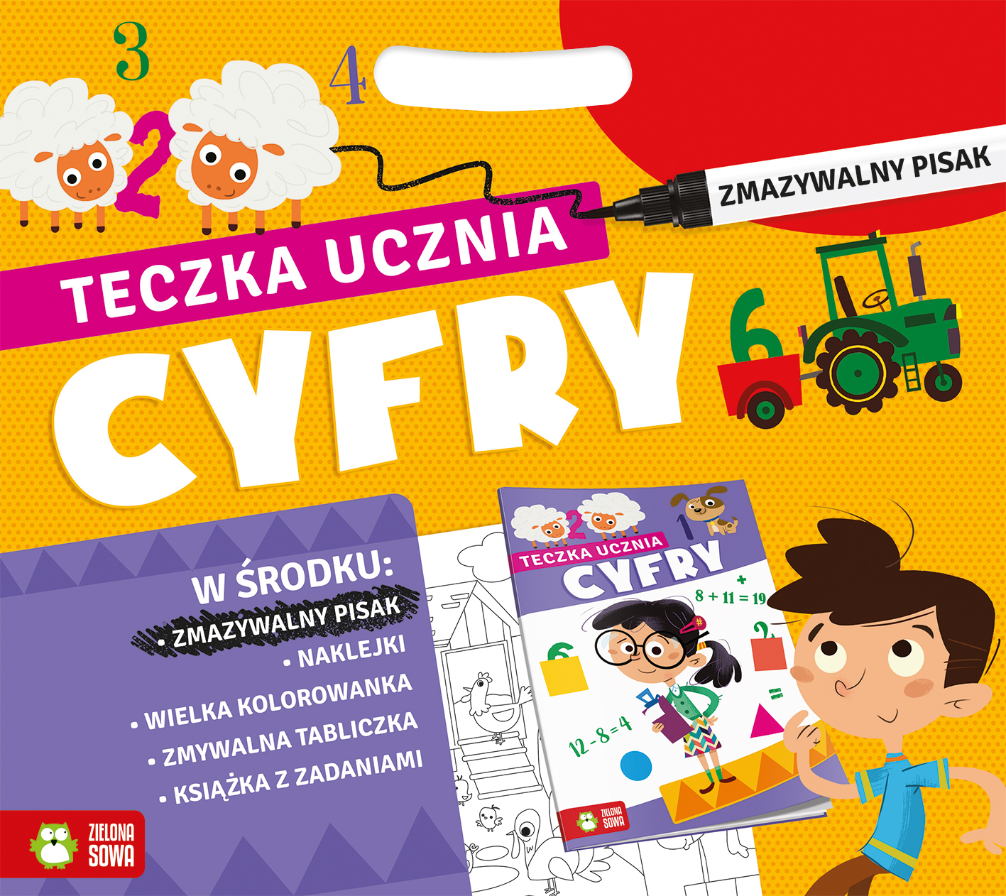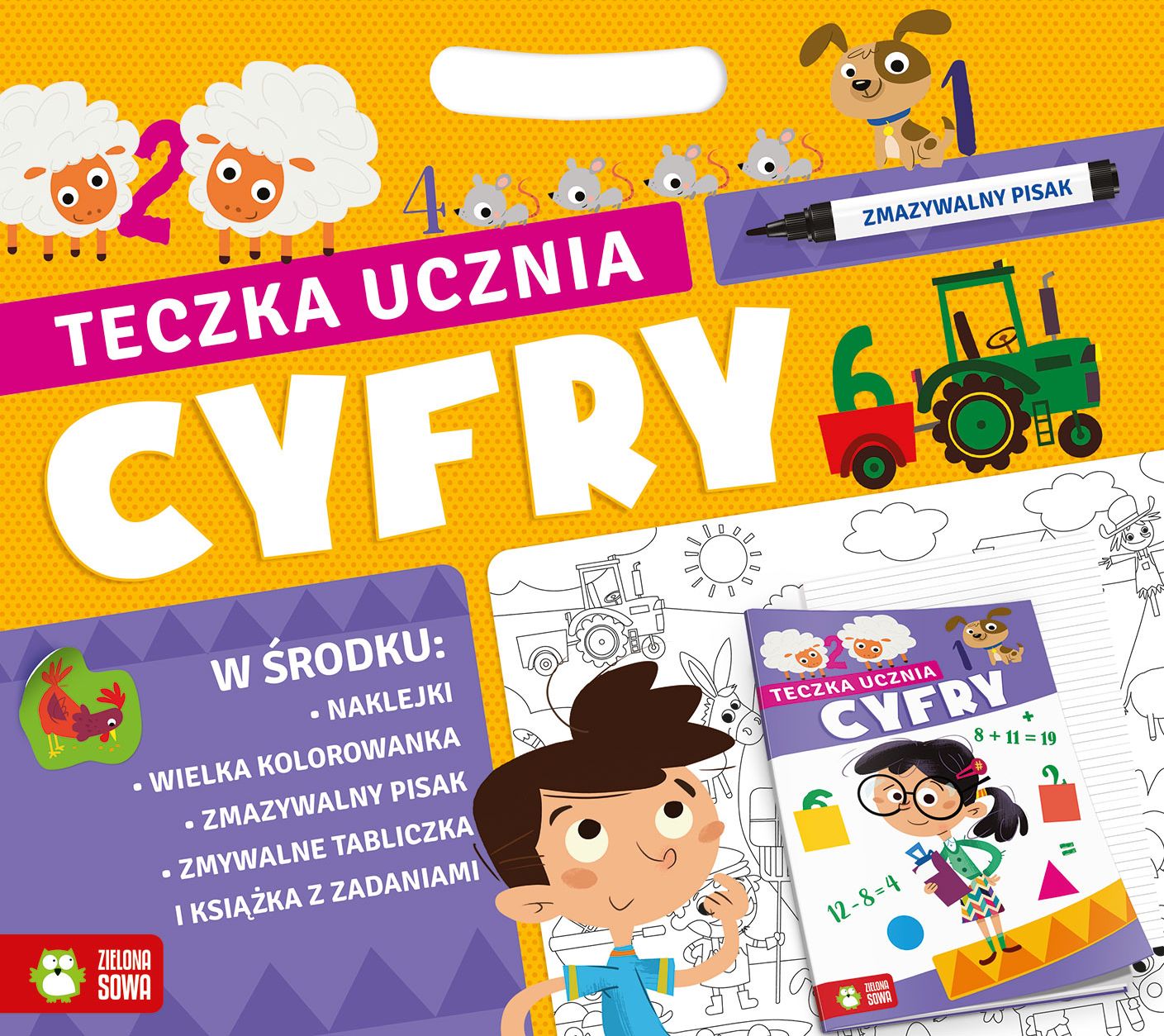 Zdobądź swoją własną teczkę perfekcyjnego ucznia! Ćwicz pisanie i liczenie, rozwiązuj proste łamigłówki i rysuj szlaczki! W domu, w podróży, w szkole i gdzie tylko zapragniesz, rozwijaj swoje umiejętności i nie daj się wkraść nudzie! Podczas nauki wykorzystuj naklejki, zmywalne tabliczki do pisania oraz zmazywalny pisak. Czeka na Was również wielka kolorowanka!