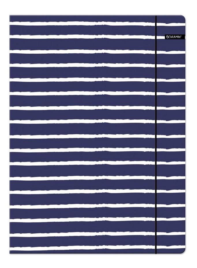 Teczka z gumką A4, granatowa w białe paski, seria Basic.