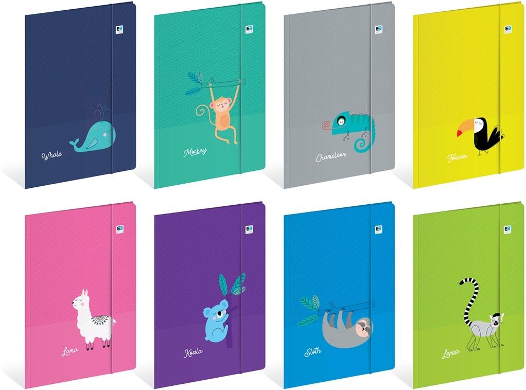 Supersztywne teczki z gumką w formacie A4+, wykonane z wysokiej jakości surowca, zabezpieczone hybrydowym i błyszczącym lakierem. Kolorowy zadruk po wewnętrznej stronie. Zamknięcie za pomocą solidnej gumki. W kolekcji 8 wzorów z wizerunkami zwierzaków z kolekcji B&B.