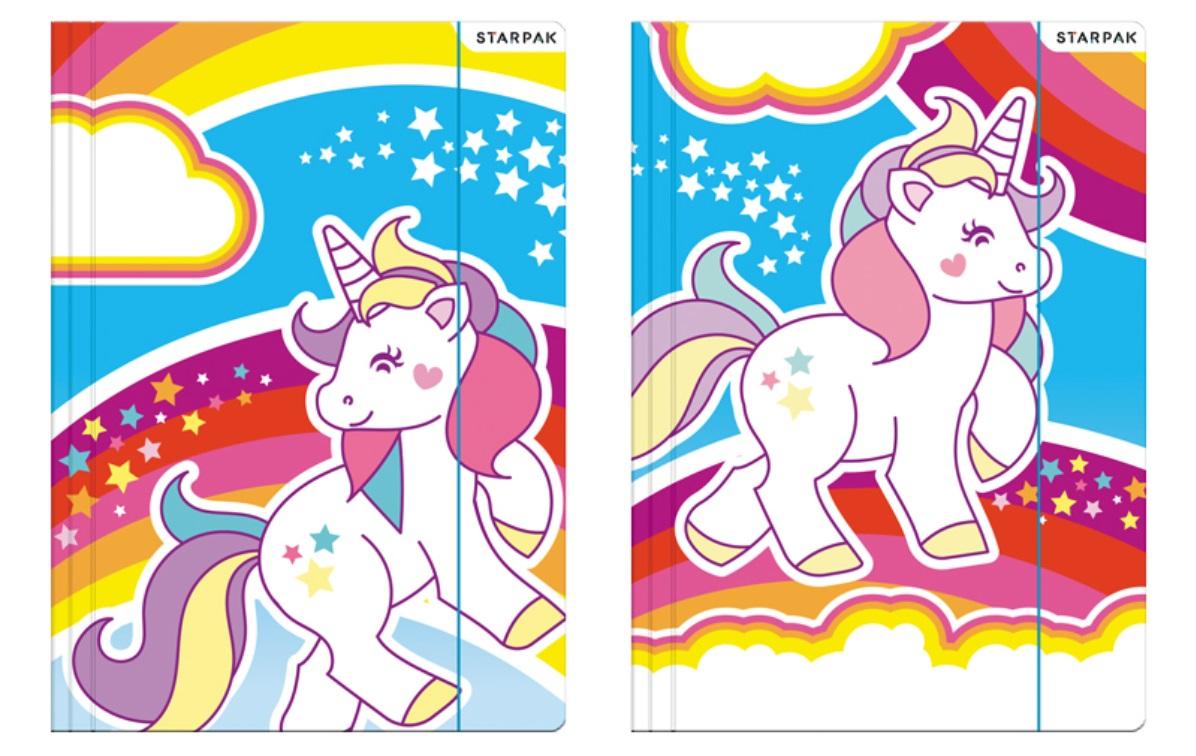 Teczka z gumką z kolekcji Starpak z licencją Unicorn do przechowywania dokumentów, dyplomów i prac artystycznych. Teczka posiada laminowaną powierzchnię z grafiką z ulubionymi bohaterami. Otworki na gumkę zabezpieczono nitami. Gumkę w oplocie wykonano z estetycznej. W środku teczki na okładce, znajduje się plan lekcji oraz pomoce dydaktyczne. Zapoznaj się również z innymi produktami Starpak z serii Unicorn! Produkt przeznaczony dla dzieci w wieku: 3+.