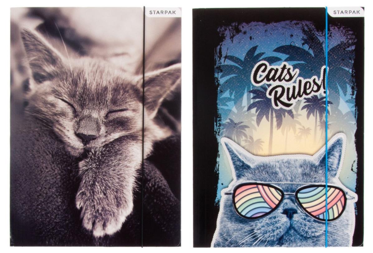 Teczka z gumką z kolecji Starpak do przechowywania dokumentów, dyplomów i prac artystycznych. Teczka posiada laminowaną powierzchnię z grafiką z kotkami. Otworki na gumkę zabezpieczono nitami. Gumkę w oplocie wykonano z estetycznej tkaniny. W środku teczki na okładce, znajduje się plan lekcji oraz pomoce dydaktyczne. Zapoznaj się również z innymi produktami Starpak! Produkt przeznaczony dla dzieci w wieku: 3+