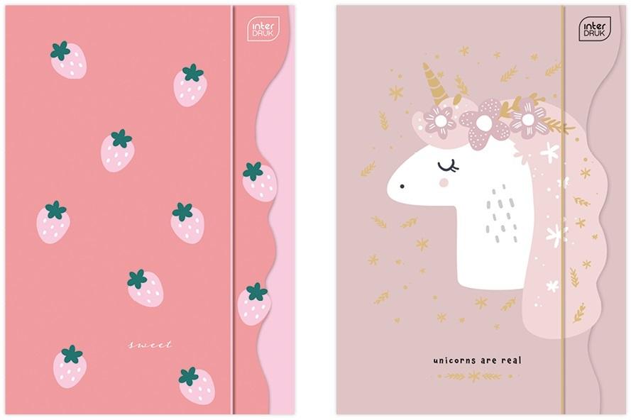Format: A4+. Zamykana na gumkę. Teczka z kolorowym nadrukiem i modnym wycięciem. Doskonale chroni dokumenty.