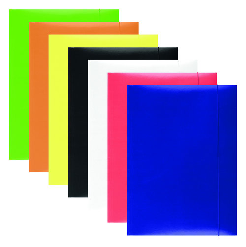 wykonana z kartonu o gramaturze 300gsm 3-skrzydłowa pokryta lakierem drukarskim o wysokim połysku okrągła, pionowa gumka w kolorze teczki chroni zawartość przed wysunięciem format: A4 rozmiar: 232x320mm mix kolorów