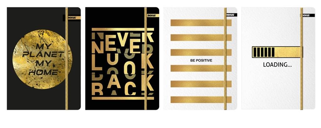 Teczka z gumką A4,szeroka złota gumka, grafika metalizowana.