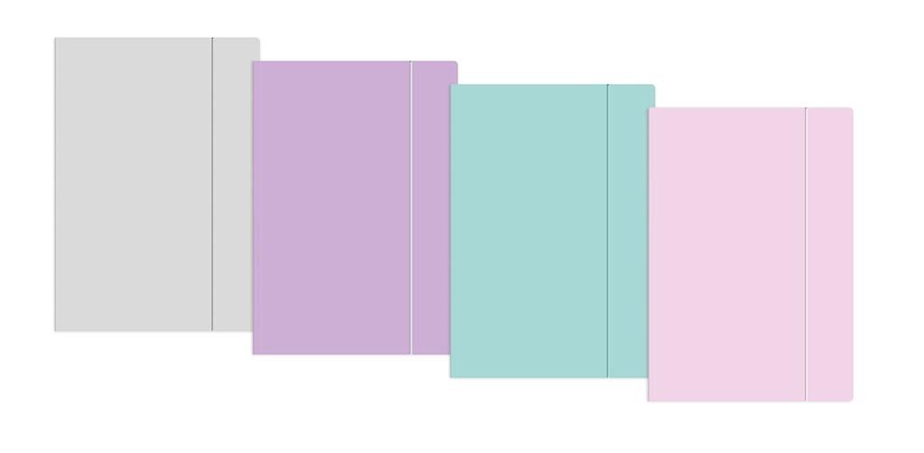 Format: A5+. Teczka dostępna w 4 pastelowych kolorach. Zamykana na gumkę w kolorze teczki. Doskonale chroni dokumenty. Teczka w mniejszym rozmiarze bez problemu zmieści się do torebki. Wykonana z wysokiej jakości kartonuo gramaturze 300 g.