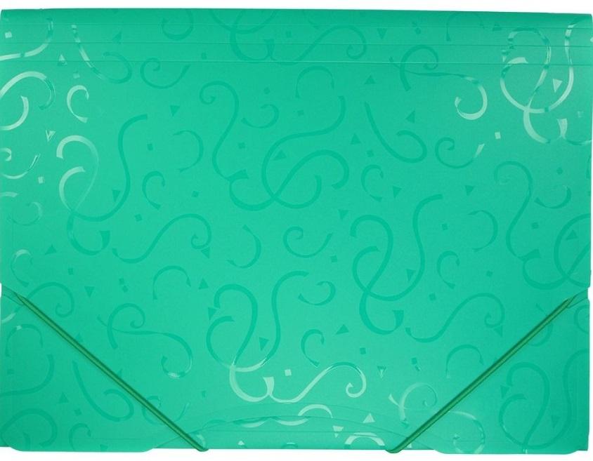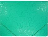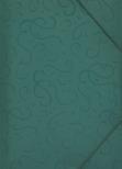 Regulowana grubość grzbietu, wykonana z twardego, kolorowego polipropylenu w tłoczone atrakcyjne wzory. Posiadają 3 zakładki zabezpieczające, zamykana za pomocą narożnych gumek w kolorze teczki. Pakowane po 1 sztuce w woreczek foliowy. Kolor: zielony
