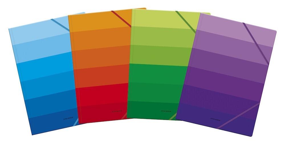 Teczki kartonowe z kolekcji Ombre to połączenie intensywnych, cieniowanych kolorów i doskonałej ochrony dla dokumentów. Zamykane na dwie narożne gumki, stanowią trwałą ochronę dla zawartości. Format C4 pozwala pomieścić dokumenty w formacie A4, a specjalne bigowanie umożliwia poszerzenie grzbietu dla większej pojemności.