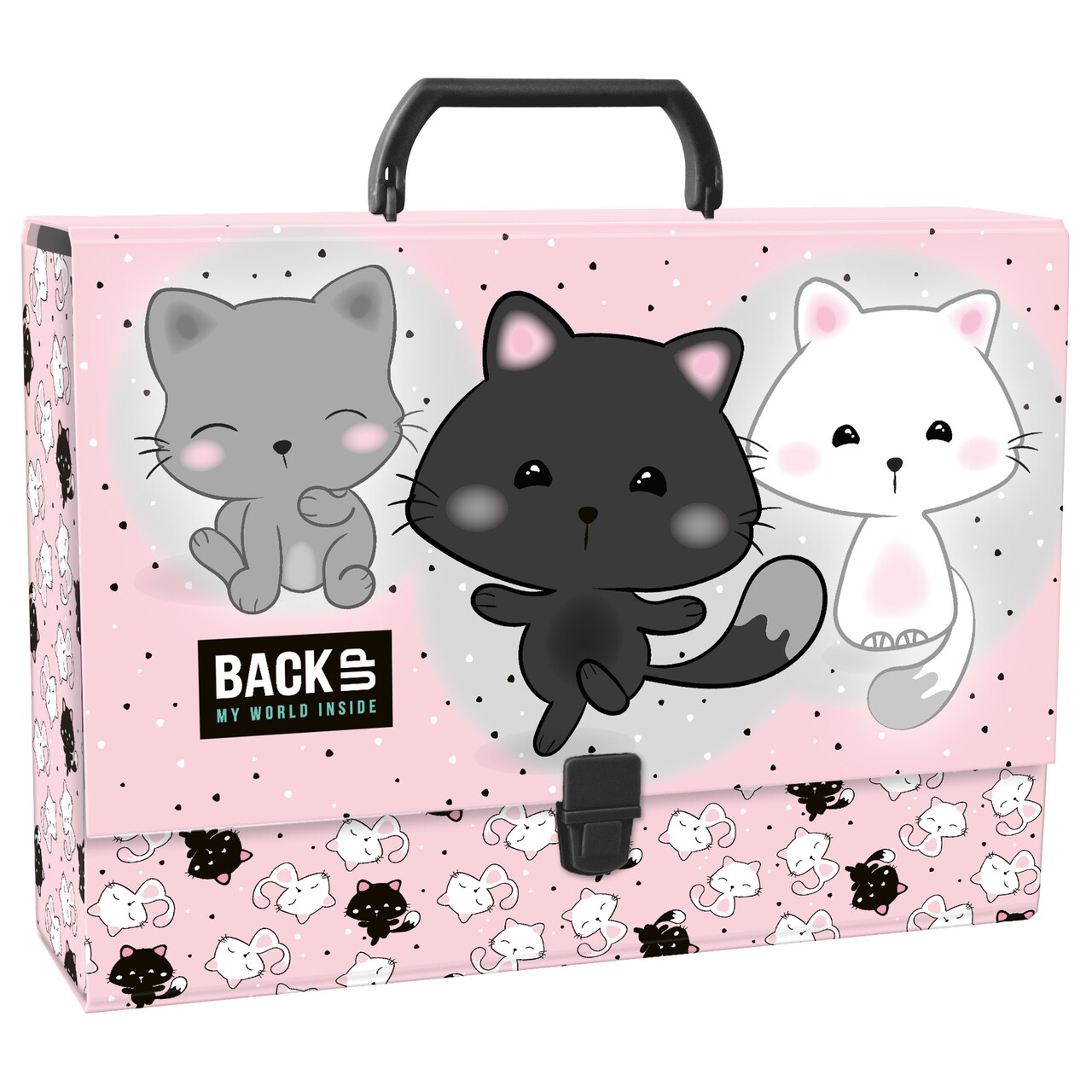 - wykonana z twardej, laminowanej tektury teczka z wygodną do przenoszenia rączką