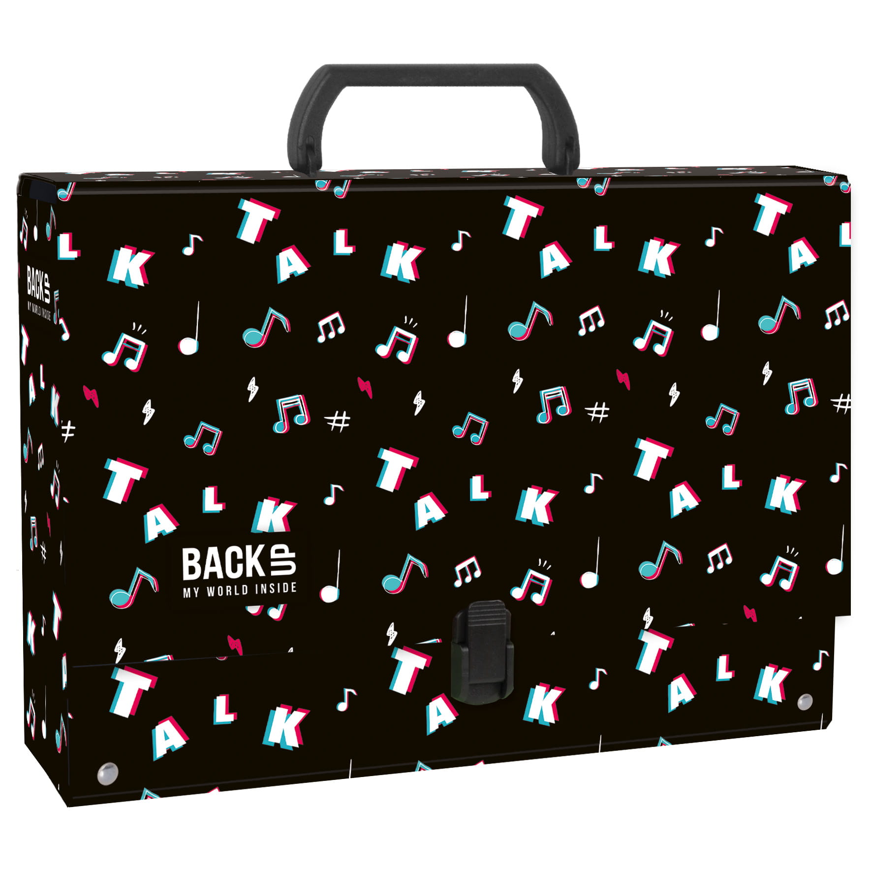 Znasz już wszystkie trendy, wiesz jak wykonać zabawne układy taneczne, uwielbiasz kręcić i oglądać śmieszne filmiki, znasz najjaśniejsze gwiazdy social mediów? To mamy coś dla Ciebie. Follow trends! Teczka z rączką w czarnym kolorze, ozdobiona nutkami, trójwymiarowymi napisami i hasztagami, które dodają charakteru. Teczka w super muzycznym klimacie! Efekt 3D, nadaje jej głębi i oryginalnego wyglądu. Z taką teczką narażasz się na zazdrosne spojrzenia wszystkich koleżanek.