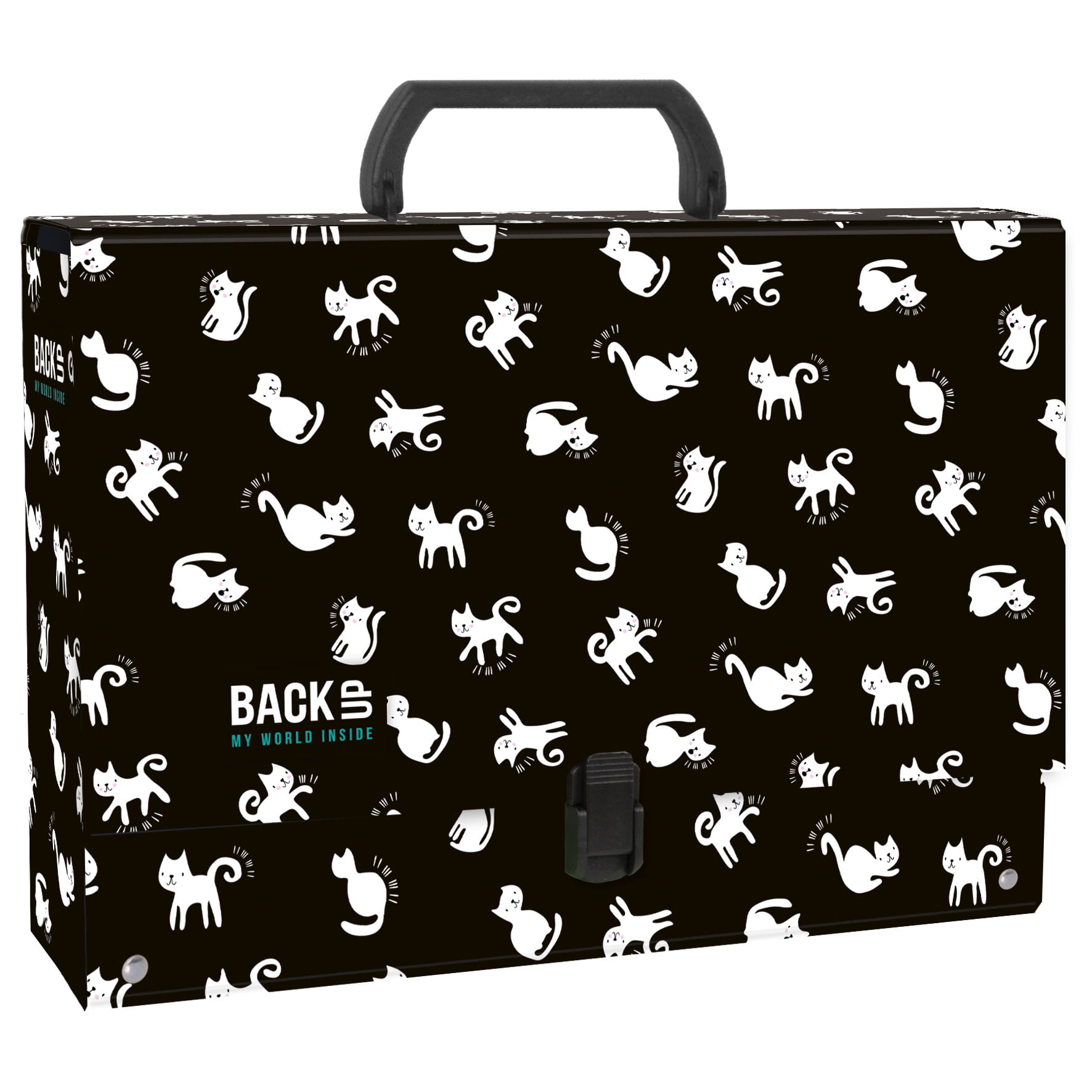 Nieśmiertelny, wiecznie modny wzór z kotami. Tym razem w klasycznych kolorach bieli i czerni w połączeniu z intrygującymi pozami tajemniczych zwierzaków. Niesforne kotki, które skaczą, łaszą się i biegają za kawałkiem wełny, ale też rozmyślają, zapatrzone w dal i znikają na całe noce, by wędrować swoimi drogami. Wzór intrygujący jak Twój kot. Biel i czerń to związek doskonały. Kontrastowe połączenie kolorów dodaje charakteru i efektu WOW. Uroczy motyw przyciągnie uwagę wszystkich fanek kocurków. Wyjątkowa teczka BackUP, która towarzyszyć Ci będzie we wszystkich niezwykłych chwilach!