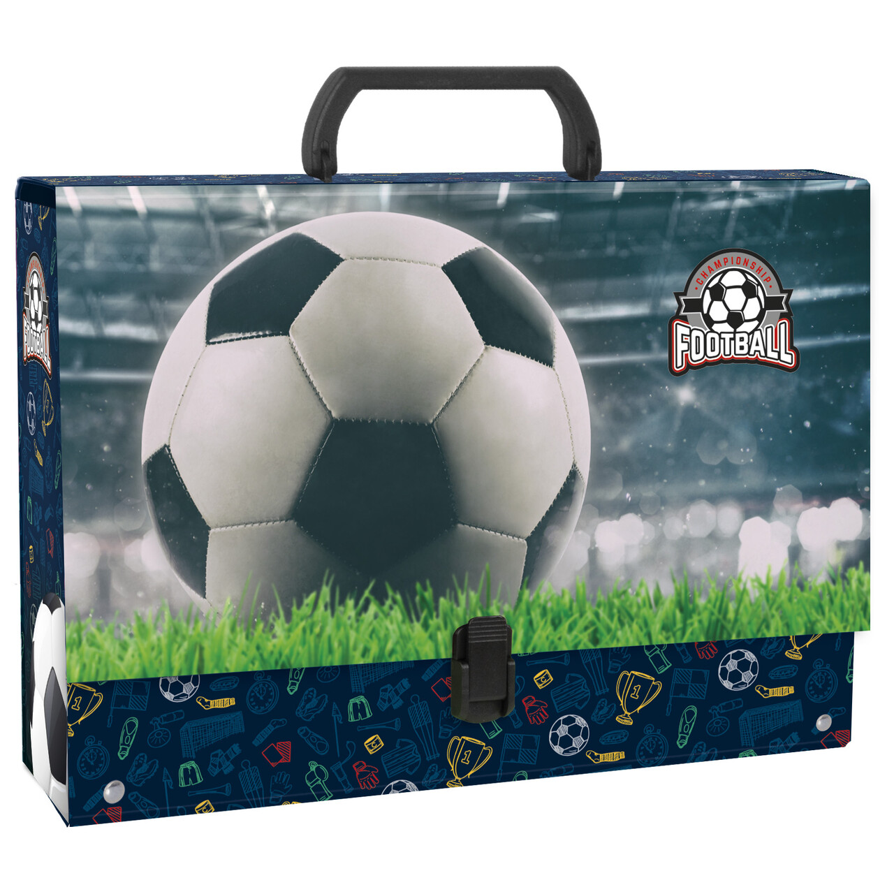Wykonana z twardej, laminowanej tektury teczka z wygodną do przenoszenia rączką.