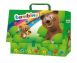 Teczka z rączką do przenoszenia i przechowywania dokumentów, pomocy dydaktycznych czy prac plastycznych. Wykonana jest ze sztywnej tektury oklejonej z dwóch stron elegancką okleiną i polakierowanej. Grafika odzwierciedla motywy licencyjne Bambino. Rączka i zamek/zapięcie wykonane z plastiku.