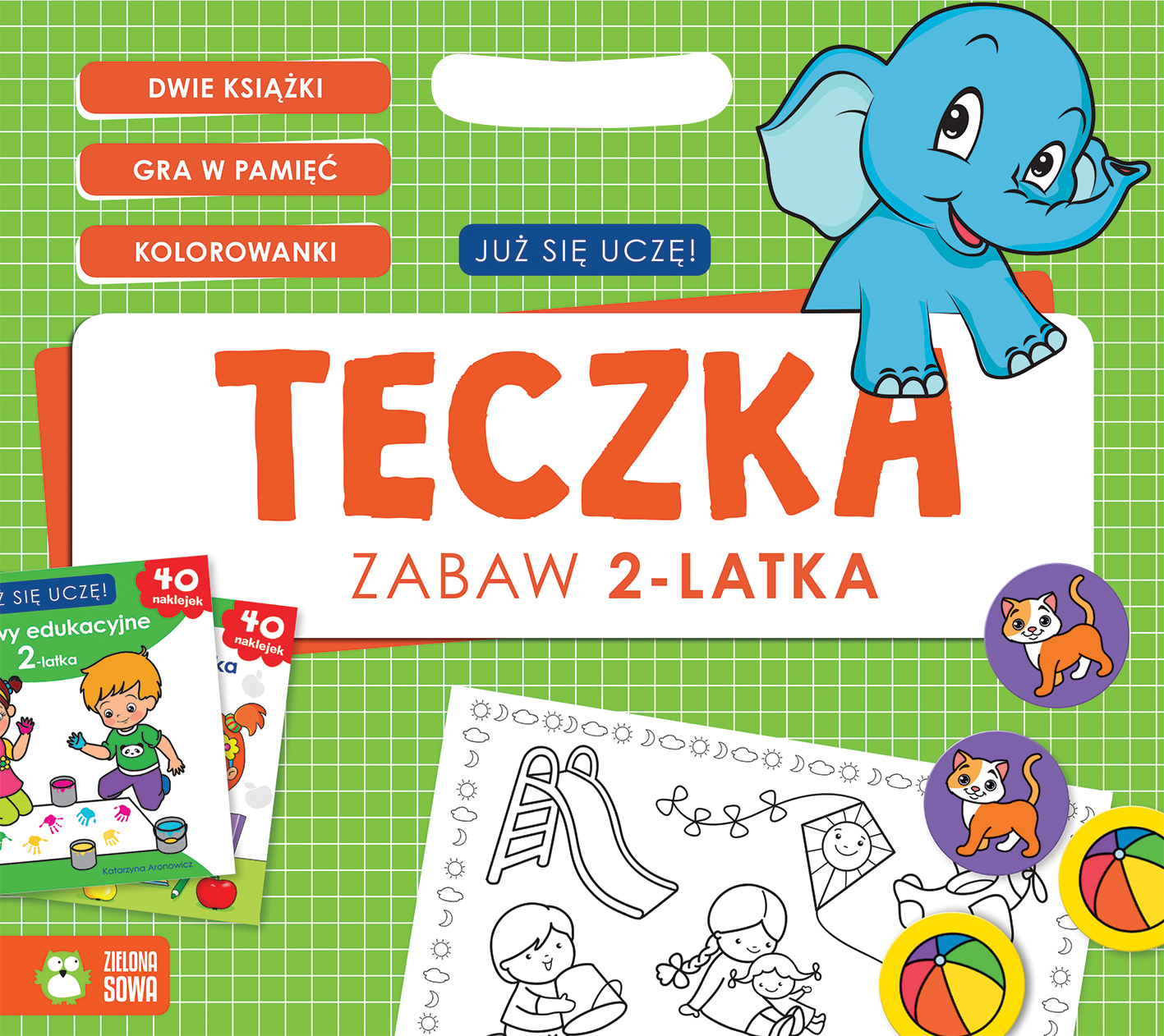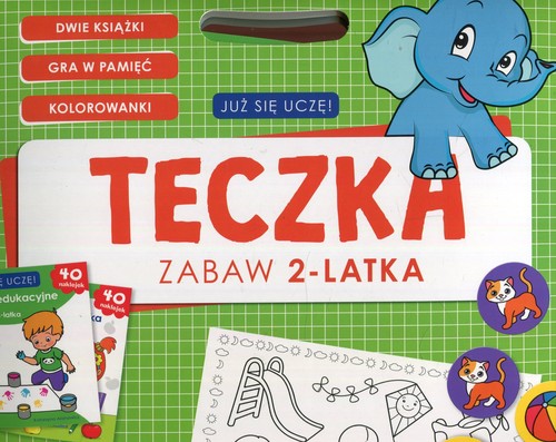 W „Teczce zabaw 2-latka” z serii „Już się uczę” znajdziecie znakomicie przygotowane książki do ćwiczeń, a także materiały do zabawy z dziećmi, tj. karty memo i dwustronny plakat. Teczki z serii „Już się uczę” to fantastyczna zabawa i nauka na wesoło!