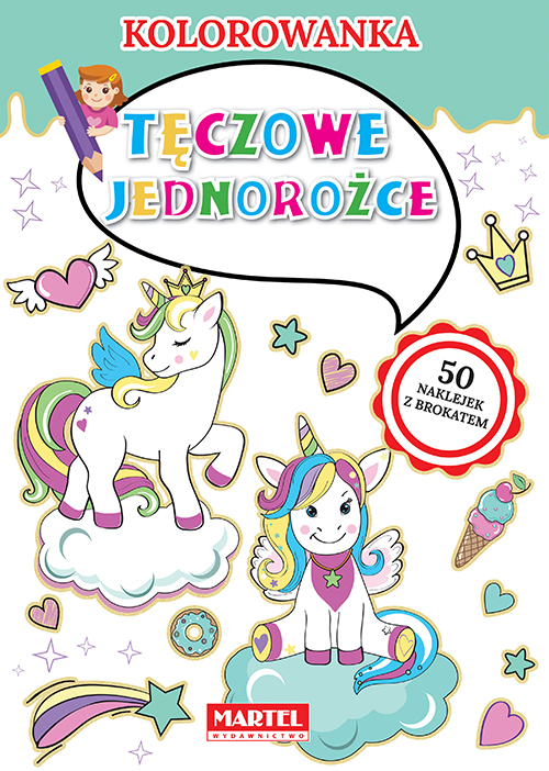 Tęczowe jednorożce to kolorowanka z ilustracjami magicznych bohaterów Gracji, Błyskotki, Iskierki oraz innych pięknych stworzeń. Książeczka zawiera 50 naklejek z brokatem.