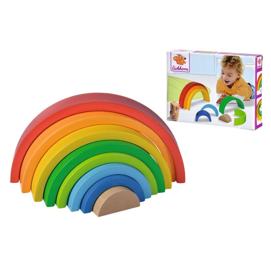 Kolorowa tęcza z drewnianych klocków zachwyca jako zabawka do sortowania i układania. Pobudzają kreatywność i drobną motorykę dzieci. Artykuł jest odpowiedni dla dzieci od 1 roku życia.