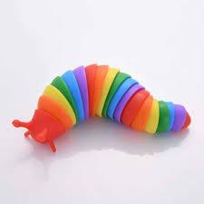 Zabawka antystresowa Fidget. Zabawa nim przynosi pozywane wrażenia. "Nieskoordynowane ruchy" tego ślimaka zaskakują i cieszą. Dodatkowym atutem jest powstały przy tym przyjemny dźwięk oraz piękny tęczowy kolor.