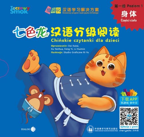 „Tęczowy Smok – chińskie czytanki dla dzieci” to jedyna w swoim rodzaju seria książeczek do nauki języka chińskiego dla dzieci w wieku od 3 do 11 lat, oparta na koncepcji nauczania modułowego i komplementarnego. Jej autorami są nauczyciele międzynarodowych szkół, posiadający wieloletnie doświadczenie w nauczaniu języka chińskiego. Kolorowe czytanki z sympatycznymi bohaterami podzielone są na grupy tematyczne, po 5 lekcji każda. Pierwsza wydana przez DIALOG seria zawiera 7 takich grup tematycznych. Każda spośród lekcji pomyślana jest tak, by poprzez zabawę dziecko zapamiętało słówka, proste zdania i dialogi w języku chińskim – dobrane tak, aby umożliwić dzieciom swobodne mówienie po chińsku na poziomie codziennej komunikacji. Historyjki, kolorowanki czy łączenie w pary to przykładowe formy zadań. Książeczki motywują najmłodszych uczniów do czytania i sprawiają, że są zainteresowani nauką. Skuteczna nauka chińskiego poprzez zabawę – to najlepsza metoda dla najmłodszych uczniów! Zestaw POZIOM 1 - CZĘŚCI CIAŁA składa się z 5 książeczek z łączną sumą stron 80. CZĘŚCI CIAŁA 1.1 - To jest moje oko CZĘŚCI CIAŁA 1.2 - Czyje usta są duże? CZĘŚCI CIAŁA 1.3 - Okrąglutka głowa CZĘŚCI CIAŁA 1.4 - Pomachaj ręką CZĘŚCI CIAŁA 1.5 - Głowa dotyka głowy Całość umieszczona jest w kartoniku (folia).