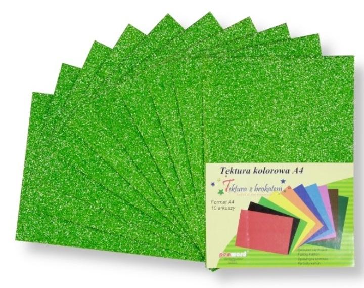 Opakowanie Tektura A4 gładka brokat zielona 10szt