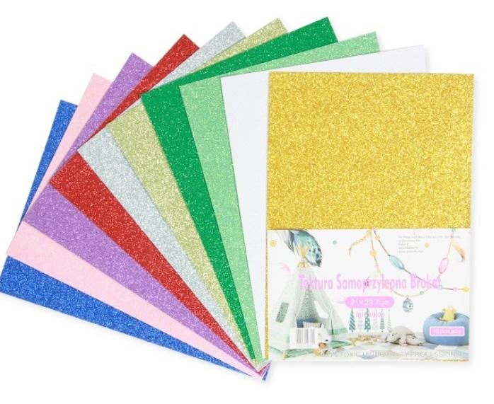 Tektura samoprzylepna brokatowa 10 kolorów