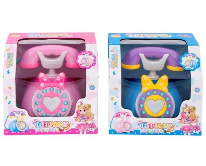 a klasyczna zabawka ma nowoczesny wygląd ale zachowuje swój klasyczny charakter. Ten wspaniały telefon dla małej księżniczki ma słodki wygląd! Telefon posiada dużą tarczę do wybierania numeru oraz klasyczną słuchawkę. Telefon ma kokardkowy design dzięki czemu jeszcze bardziej przyciąga uwagę dziewczynek. Telefon posiada efekty dźwiękowe oraz świetlne. Zabawka wykonana z plastiku. Przeznaczona dla dzieci w wieku: 3+. Wymaga zasilania bateriami 3 x AALR06- nie załączone do zestawu.