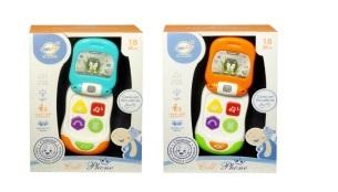 Kolorowy telefon dla dzieci. Zabawka świeci kolorowym świtełkiem, wydaje dźwięki i gra melodie. Posiada 5 przycisków funkcyjnych. Zabawka działa na baterie typu AAA. Baterie nie są załączone do zabawki. Produkt występuje w kilku wersjach kolorystycznych, wybierany losowo. Cena dotyczy jednej sztuki. Zabawka zapakowana w kartonowe opakowanie z okienkiem. Podane wymiary są wymiarami opakowania. Produkt dla dzieci od 18 miesiąca życia.