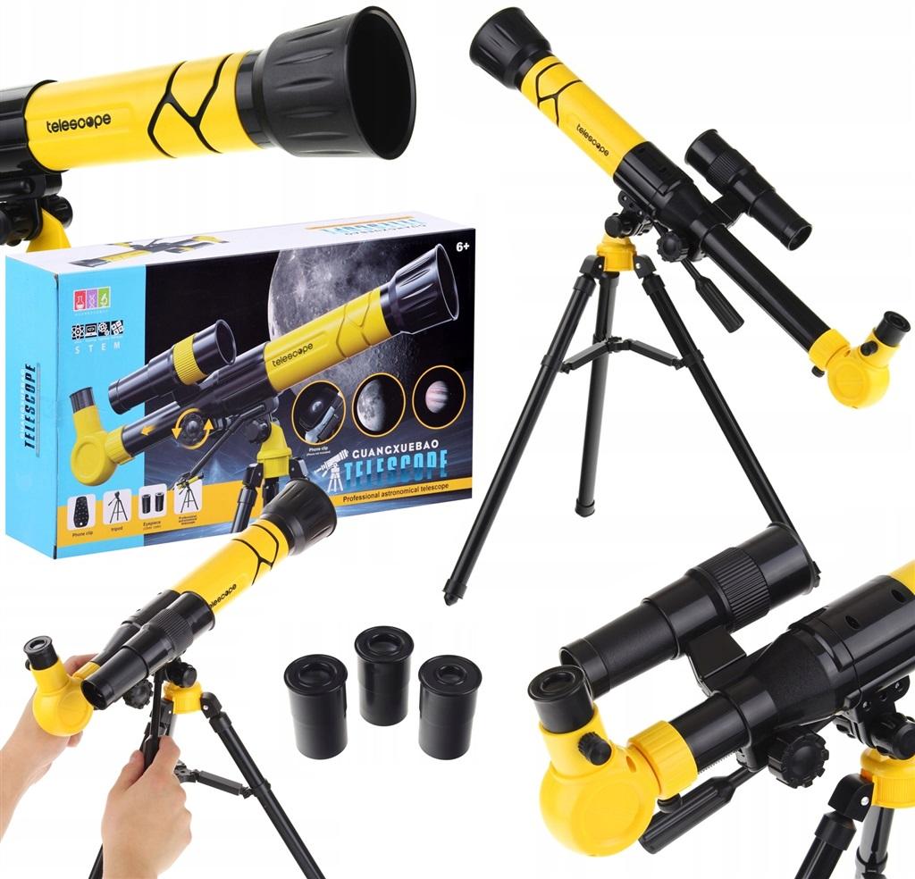 Teleskop-luneta na regulowanym statywie z wymiennymi obiektywami.