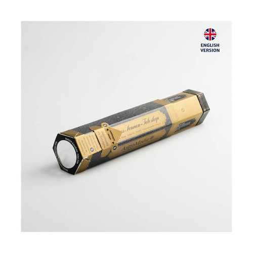 Jak bezpiecznie obserwować słońce? Najprościej i najtaniej za pomocą teleskopu słonecznego AstroMedia! Bezpośrednia obserwacja słońca może uszkodzić wzrok, dlatego należy je oglądać przez odpowiednie filtry. Teleskop słoneczny AstroMedia to znany już mały teleskop Galileusza uzupełniony o filtr przeciwsłoneczny, dzięki któremu będziesz mógł prowadzić bezpieczną obserwację słońca i szukać na jego powierzchni okresowo pojawiających się plam, a także zaćmień*. Opis: Zestaw do budowy małej lunety o 6,5-krotnym powiększeniu zaopatrzony w demontowalny filtr przeciwsłoneczny z folii BAADER. Po zdemontowaniu filtra luneta może być używana do obserwacji natury, gdyż daje prosty nieodwrócony obraz. Dodatkowo instrukcja zawiera opis, jak za pomocą zbudowanego teleskopu wyświetlić obraz słońca na kartce papieru jako 5-centymetrowy jasny dysk i cieszyć się obserwacjami w większym gronie. Kartonowe elementy są wstępnie wycięte przez sztancowanie, co pozwala na ich wyjęcie bez wycinania. *- Najbliższe zaćmienie słońca 29 marca 2025. Przygotuj się już teraz. Wymiary po złożeniu: średnica ok. 4 cm; długość ok. 23 cm Zawartość zestawu: 1 arkusz lakierowanego kartonu zawierający elementy do budowy teleskopu sztancowanie pozwala na wyjęcie elementów bez konieczności wycinania 1 arkusz folii BAADER AstroSolar filter 2 soczewki akrylowe OptiMedia nr 1 ( f = -35 mm) oraz nr 8 (f +225 mm) polskojęzyczna instrukcja