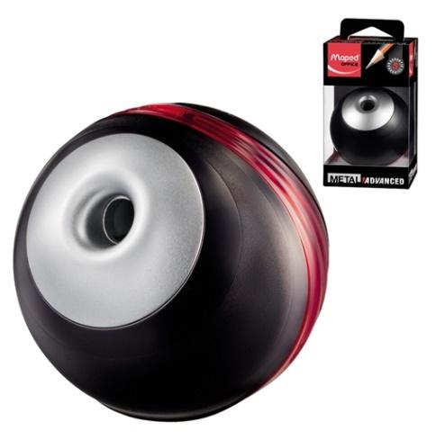 Temprówka ADVANCED o okrągłym, futurystycznym kształcie. Obszerny, transparentny pojemnik w kolorze czerwonym, metalowy wkład. Trwała- temperuje przynajmniej 25 całych ołówków. Gwarancja 5 lat.