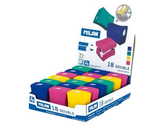 Temperówka DOUBLE z powłoką TOUCH - matową, satynową, w dotyku jak gumka. Temperówka podwójna zarówno na grube, jak i cienkie ołówki i kredki z pojemnikiem na ścinki. Bezpieczne ostrze ze stali węglowej. Idealna do piórnika.
