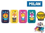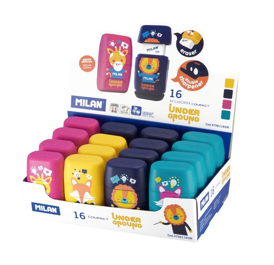 Fantazyjne połączenie gumki i temperówki w jednym. Z jednej strony podwójna temperówka z bezpiecznym ostrzem ze stali węglowej. Z drugiej miękka gumka syntetyczna, a po środku pojemnik na ścinki. Wszystko w żywych kolorach i nowoczesnym designie nawiązującym do kolekcji UNDERGROUND. Produkt z bezpiecznym ostrzem. System bezpieczeństwa zapobiegający odczepieniu się ostrza od temperówki czyni z niej idealny dodatek do piórnika. Produkt został opracowany przez nasz Dział B+R w Hiszpanii. Dostępne wersje kolorystyczne: żółta, różowa, zielona, granatowa z nadrukiem zwierząt.