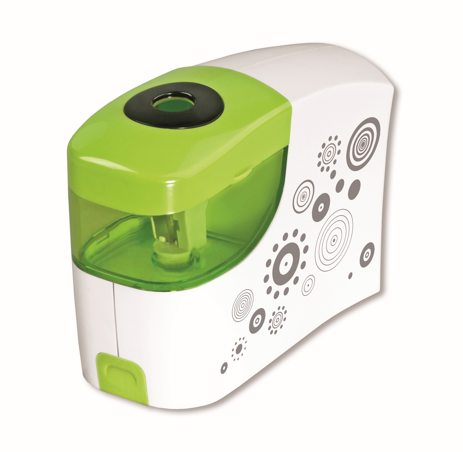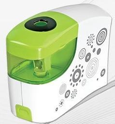 Automatyczna temperówka na baterie typu AA (4 sztuki, nie dołączone do opakowania) wyposażona w dwa wymienne mechanizmy ostrzenia z otworami różnej średnicy (11 mm, 8 mm). Posiada wyjmowany pojemnik na ścianki oraz antypoślizgowy spód. Możliwość użycia bez baterii.